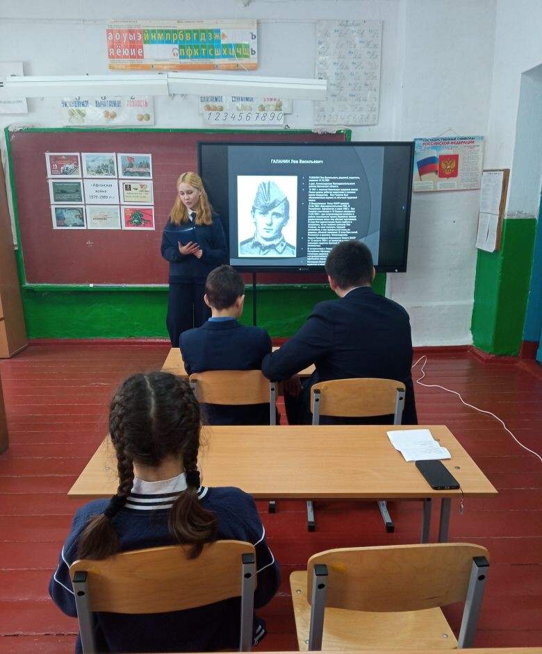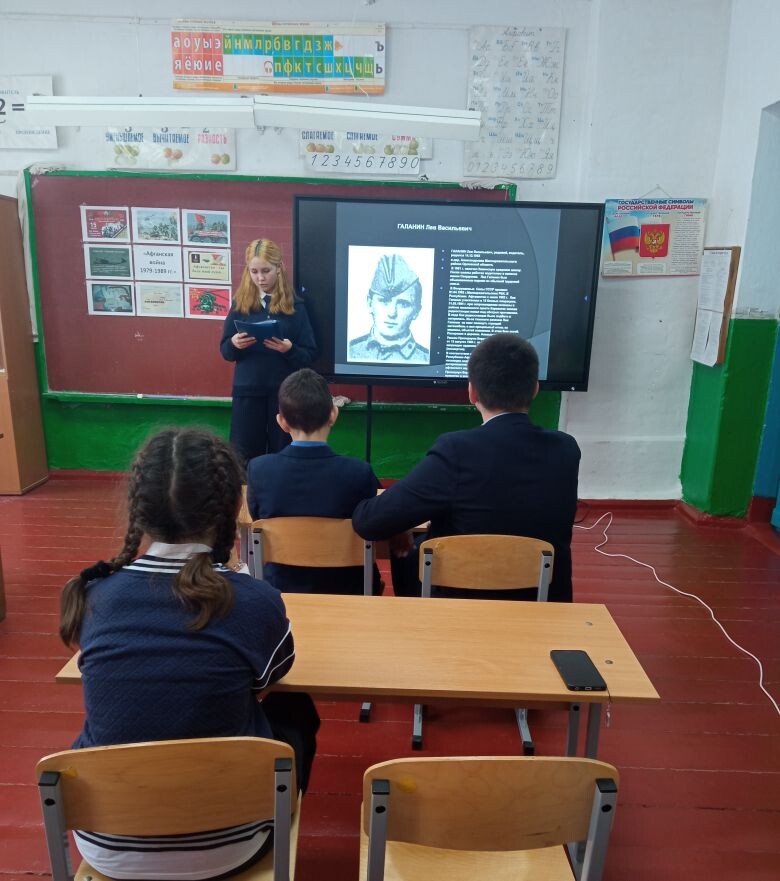 Учитель истории Маслова О.П. рассказала о причинах ввода советских войск в Афганистан 25 декабря 1979 г., об основных событиях и итогах Афганской войны. Ребята с интересом посмотрели презентацию «Солдаты войны не выбирают (Афганская война 1979-1989 г.г.)».