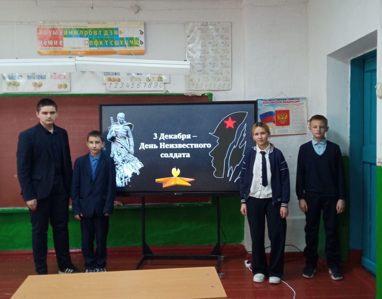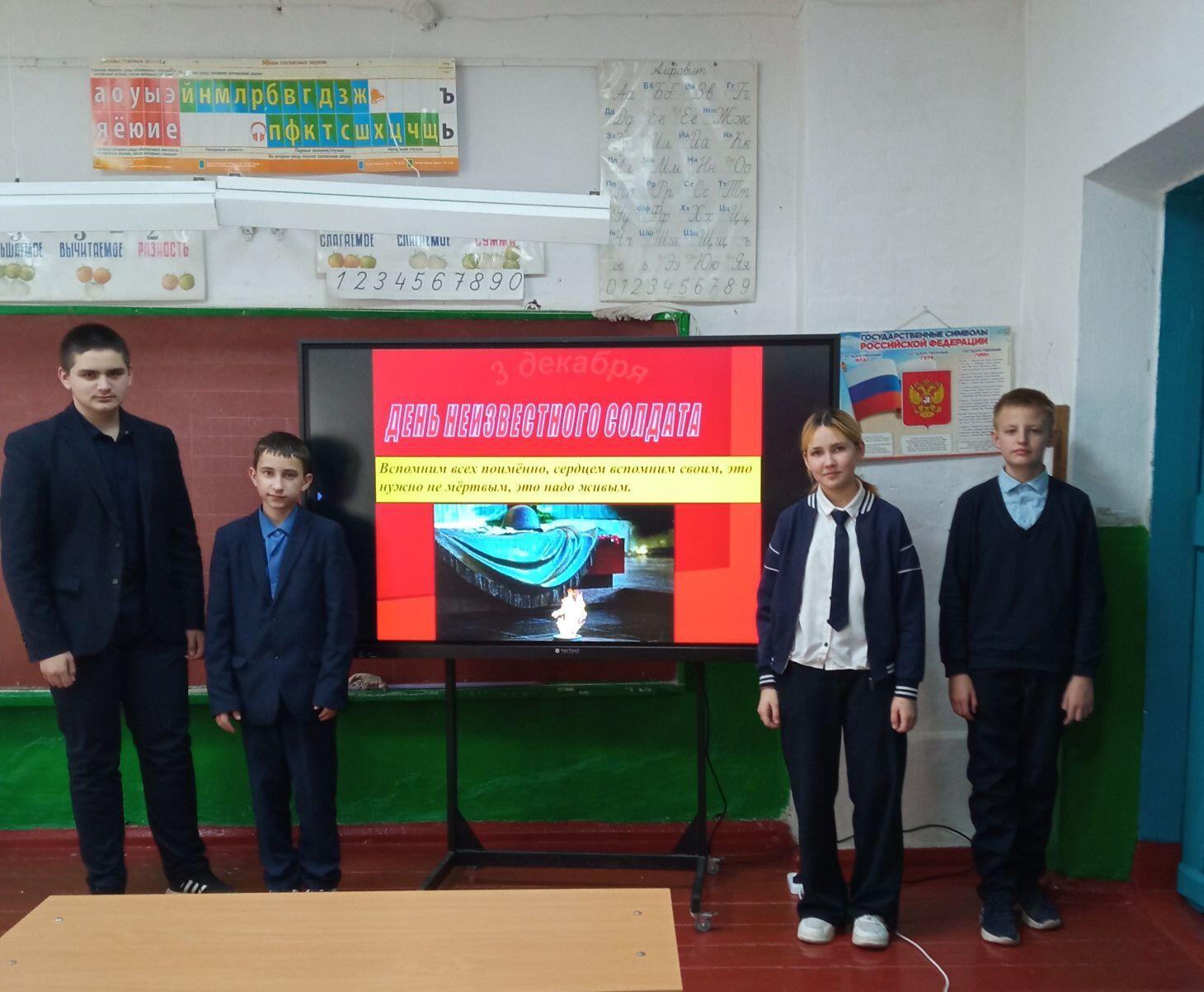 В МБОУ «Архаровская оош» был проведен урок мужества «Никто не забыт, ничто не забыто», посвященный Дню Неизвестного Солдата. Учитель истории Маслова О.П. рассказала историю открытия архитектурного ансамбля «Могила Неизвестного Солдата». В рамках мероприятия вспоминали безымянных героев, защитников Отечества, погибших в годы Великой Отечественной войны, известных под именем «Неизвестный солдат», которые сложили голову во имя Отчизны, но не сложили оружия и стояли, и жили, и воевали до последнего вздоха. Лишь немногим героям удается вернуть имена, остальные так и остаются «неизвестными солдатами». Участники мероприятия совершили виртуальную экскурсию по местам памяти, где установлены памятники и мемориалы неизвестному солдату, братские могилы «Памятники вечной славы». Эмоционально и трогательно прочитали стихи о солдатах, подаривших нам мир, о Родине, о матерях и о желании жить. Большой интерес вызвала интерактивная викторина «День Неизвестного Солдата». Прозвучали песни В.Высоцкого «Братские могилы», «Он не вернулся из боя». Память погибших почтили минутой молчания.