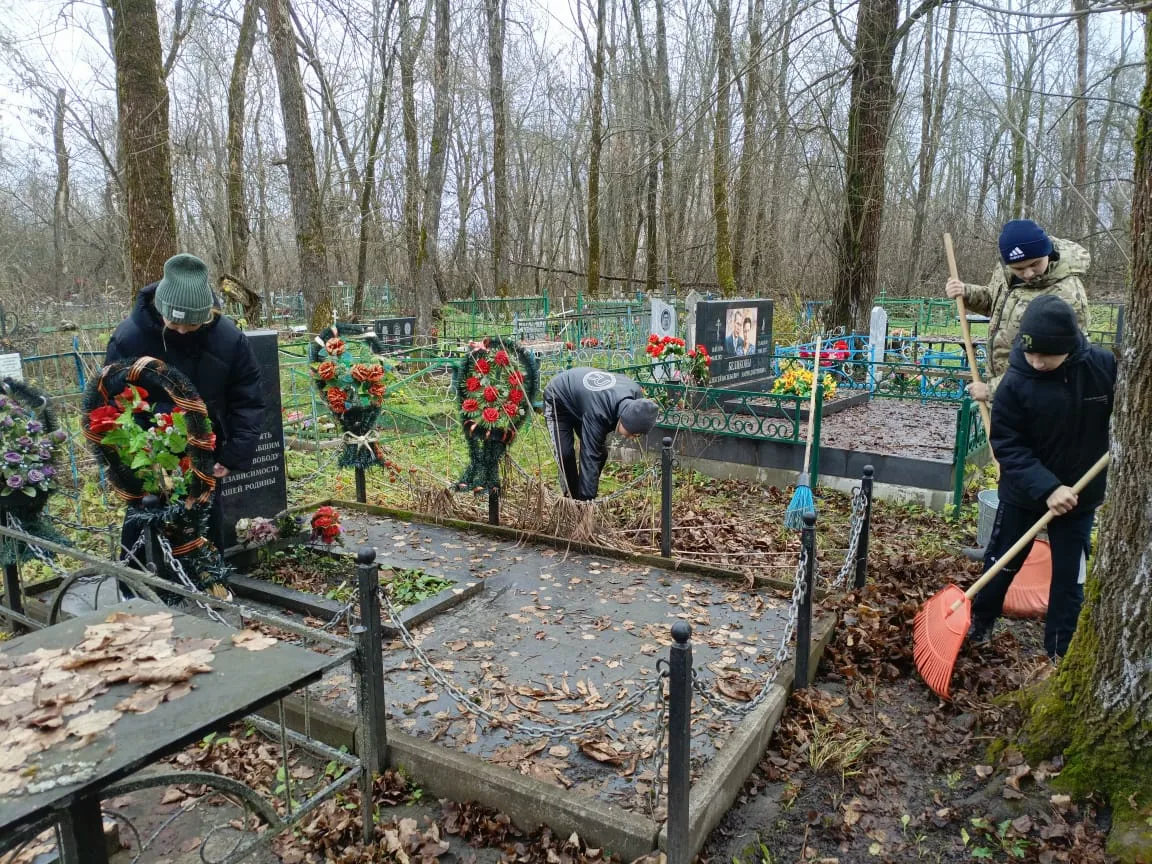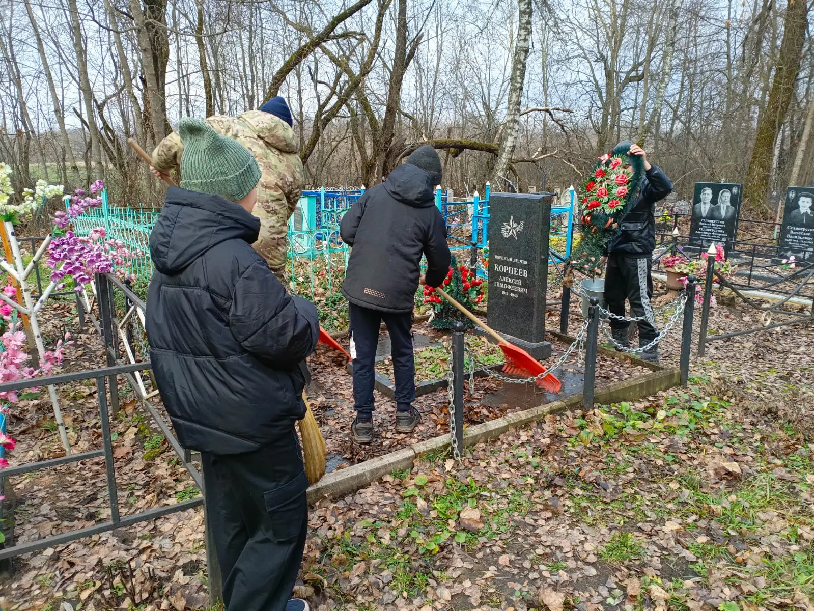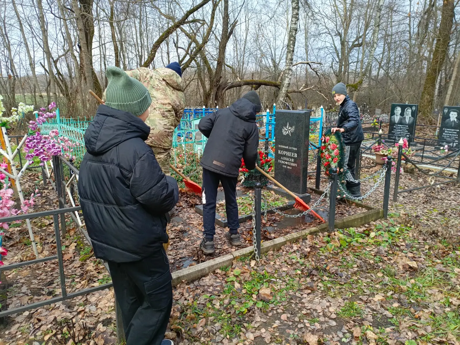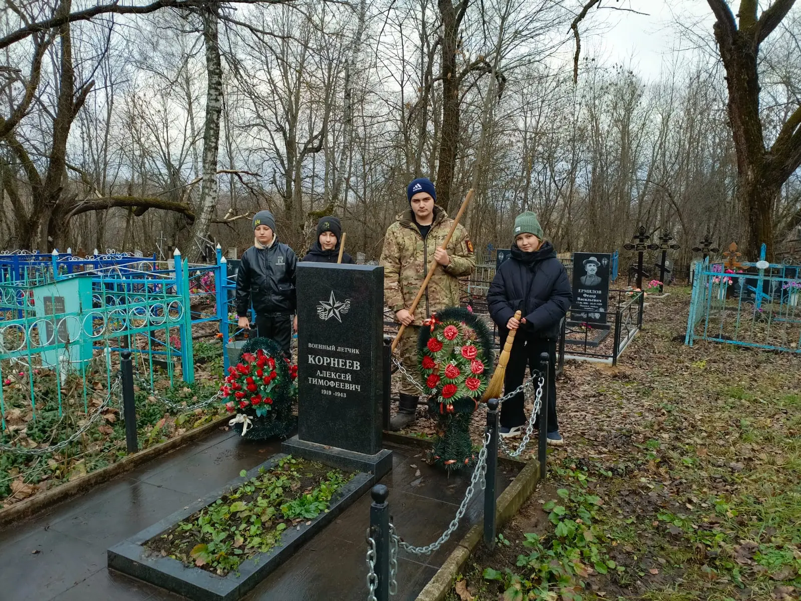 Ребята благоустроили воинские захоронения на территории родного села. На территории села Архарово находятся два воинских захоронения: братская могила и могила старшего сержанта Корнеева Алексея Тимофеевича — командира взвода 652 артиллерийского полка, который был убит в бою 09.06.1943 г. Ребята провели уборку воинских захоронений от опавшей листвы, мусора, произвели мытьё памятников и надгробий.
